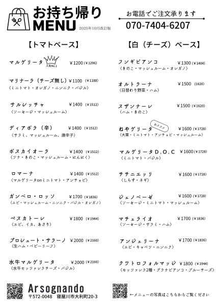 当店設置のテイクアウトチラシをお持ちいただいているお客様にはご不便をおかけいたしますが、新しくなりました「2025..10月改訂バージョン」をお渡しさせていただきます。