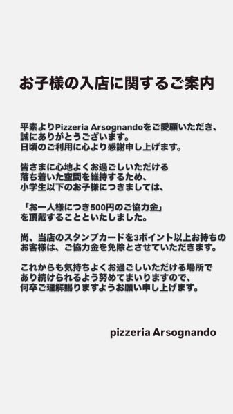 平素よりPizzeria Arsognandoをご愛顧いただき、誠にありがとうございます。