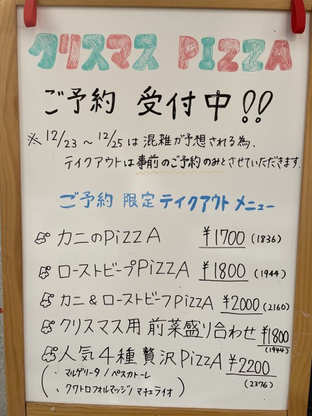 12/23〜12/25は混雑が予想されますので、テイクアウトに関しまして